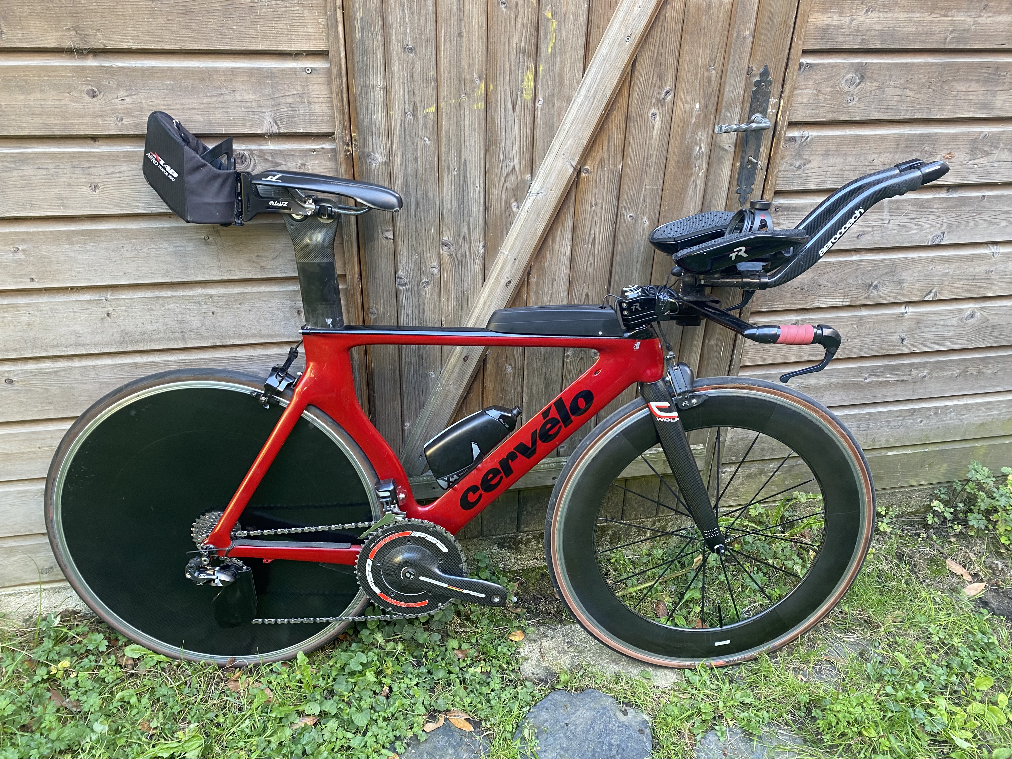 Vends Cervélo P3C carbone taille 54. Vélo de clm triathlon Equipé en ultégra di2 11 vitesses (dérailleur avant et arrière) Commande double boutons au bout de chaque prolongateur Commande simple bouton au niveau des poignées de freins (poignées dura ace) Cintre tririg alpha one avec scoops fermées tririg (version longue) avec porte bidon profile design (support compteur intégré au porte bidon) Prolongateurs aerocoach 45 degrés Frein avant tririg Frein arrière dura ace Roue avant Sram s80 avec pneu schwalbe pro one 25 mm neuf Roue arrière renn 575 corps Campagnolo avec pneu schwalbe pro one 25 mm récent Cassette 100 % titane 11-25 Pédalier fsa Neo pro manivelles 177,5 avec plateaux aéro 54 – 42 Selle dash avec support pour simple ou double porte bidon et 2 cartouches co2 Je le vends tel que sur la photo avec du matériel supplémentaire. Matos supplémentaires : – un plateau fsa carbone 53 neuf – un plateau fsa carbone 54 neuf – un plateau fsa aéro 42 neuf – une paire de prolongateur tririg – deux jeux de pédaliers fsa – la chape ultegra d’origine – une chape générique absolute black – un porte bidon double xlab sonic – 2 portes bidons ec90 (générique) – un porte bidon x lab xenon – un bidon de cintre profilé profil design (avec paille) – un porte bidon transfil avec paille pour venir jusqu’au prolongateur – une box de réparation imprimé3D (rigidifié avec du scotch tressé car elle était fissurée) Après, il n’est pas parfait et a vécu et le capot de potence tririg est cassé. 2 accrocs de peinture sur la douille de direction. N’hésitez pas à me contacter pour d’autres renseignements ou photos complémentaires.