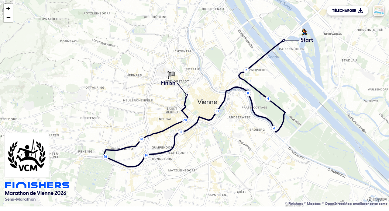 Semi marathon de Vienne, une des meilleures courses d’Europe. Parcours facile et plat : Le départ se fait à 9h, sur la Wagramer Straße, à proximité de l’Office des Nations Unies. Tu prendras le Reichsbrücke afin de traverser le Danube. Une fois de l’autre côté de la rive, tu traverseras le grand parc du Prater. Pendant 3 km, tu longeras le Danube pour arriver au centre-ville historique. Au bout de 21 km, tu arriveras devant le Burgtheater, en face de la célèbre mairie de Vienne. Le tracé du semi correspond à la moitié du parcours du marathon Le dossard est à récupérer sur place le samedi